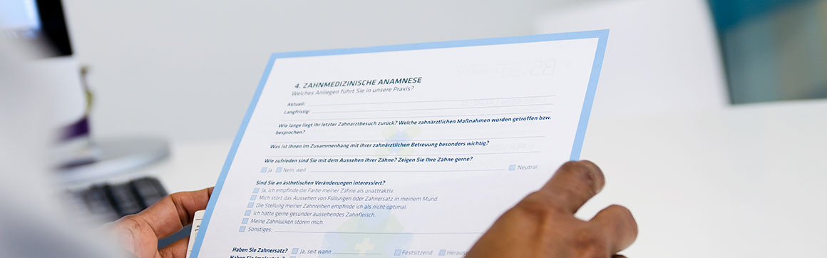 Um die Wartezeit zu verkürzen, können Sie sich unseren Patientenbogen herunterladen und zum Termin ausgefüllt mitbringen.